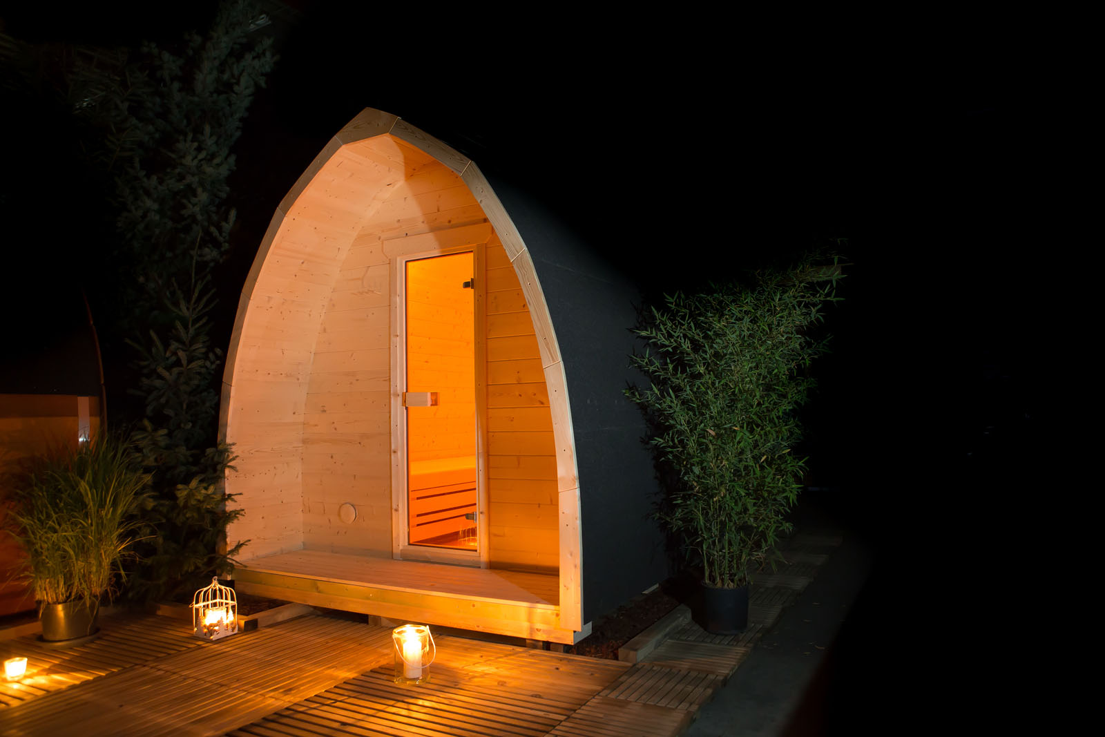 – Espen Thermohout: Espenhout dat een speciale warmtebehandeling gehad heeft. Hierdoor heeft het een warme, donkere kleur gekregen, is het harsvrij en neemt het geen vocht op. Hierdoor is het beschermd tegen rotting en schimmels en daardoor zeer duurzaam en ideaal hout voor buitensauna’s.